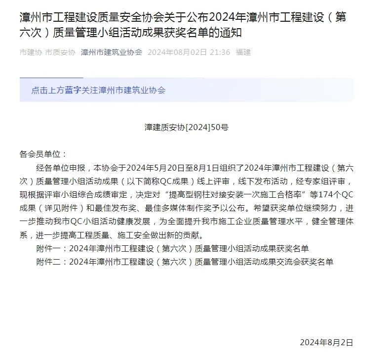 此次獲獎不僅標(biāo)志著通邦公司在工程質(zhì)量管控領(lǐng)域邁出了堅實的一步,更為公司后續(xù)項目的順利推進(jìn)奠定了堅實基礎(chǔ),同時為后續(xù)參與水仙杯、閩江杯等更高層次榮譽獎項的角逐積累了寶貴經(jīng)驗。