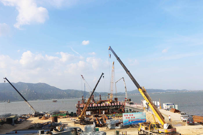 據悉,漳江灣特大橋南引橋共有直徑樁基228根,均為海上端承樁,施工條件惡劣,各參建單位克服重重困難,完成了首根樁基的灌注,為后續施工提供了借鑒和參考。